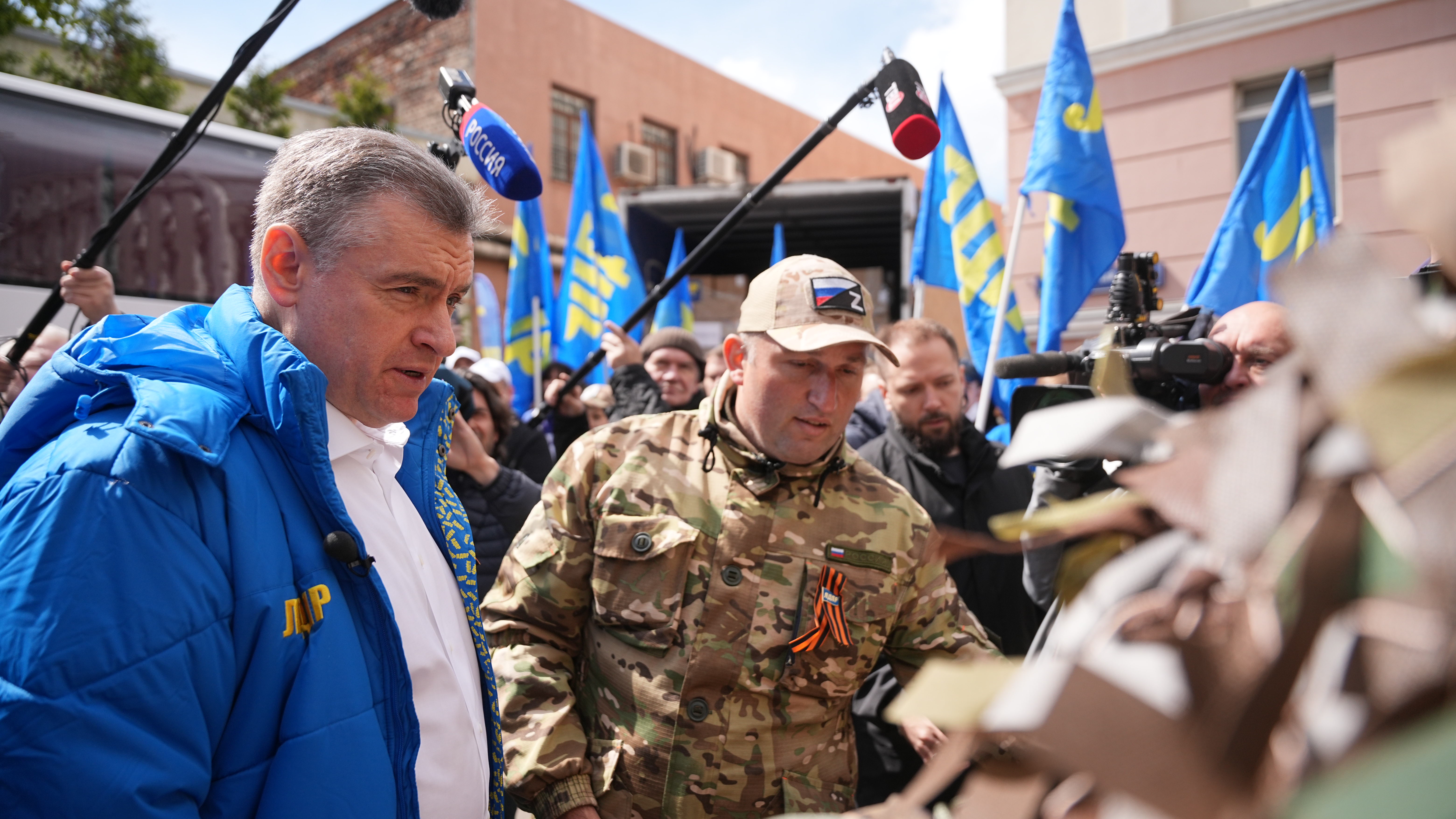 «Через несколько минут от здания ЛДПР отправляются автобусы с гуманитарным грузом. Такие автобусы отправляются каждые несколько дней, но в данном случае мы собрали большой объём. Слаженно потрудились наши региональные отделения, особенно хотел бы отметить Курск и Ярославль. Мы отправляем рации, генераторы, беспилотные летальные аппараты, аптечки, медикаменты и многое другое, необходимое фронту. Автобусы пойдут через Белгород, Луганск, Артёмовск, Донецк. По просьбе Горбольницы № 1 города Енакиево передаём им аппараты Илизарова, которые нужны хирургическим больным. Ничего более важного нет, чем сообща, плечом к плечу, работать на победу. И ЛДПР продолжит работать в этом важнейшем направлении. Хочу поблагодарить каждого, кто приближает нашу победу в святой и благородной специальной военной операции. И там – в трудных условиях за ленточкой, и тут – в тылу», – сказал лидер ЛДПР Леонид Слуцкий.